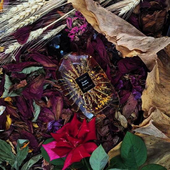 2015年発売の最初のラインの香り。ルビーの夕暮れというタイトルで、夕暮れというのは「生まれ変わり続ける」と言う意味があるようです。