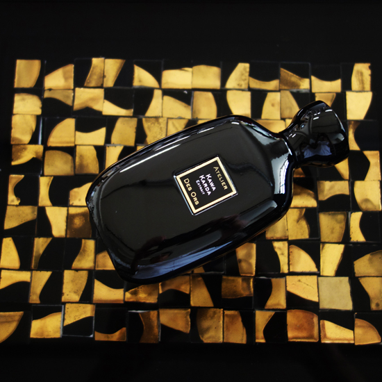 では、そのカルダモンコーヒーがどうなっているかというと、トップでは意外なことにナッツが弾け、少しグルマンなナッツ系コーヒーがしっかりと主張するカルダモンを従えて広がります。香りはそこからローズをアクセントとしたグルマンではないカルダモンコーヒーに切り替わっていくのです。カカオと比べるとこちらの方があっさりとして感じられるけれど、個性という点では引けを取りません。とてもユニークなスタイルで肌に馴染み、長く香り続けます。カカオ同様に一番多いのはIso E Superですが、多量にあっても主張しませんから、アンバーウッディノートがムスクと共に下支えするベースに、全てが溶け込んでいる形で、まるで黒ばかりで作られたモザイクのような香り。