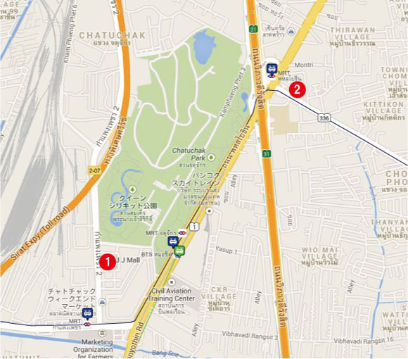 マーケット内はとても複雑に入り組んでいますので、店舗がわかりづらいかもしれません。セクションナンバーとルームアドレスを頼りに探してみてください。 MRTのKamphaeng Phet駅、またはBTSのMo Chit駅、Chatuchak Park駅下車1番出口より徒歩すぐ。(10:00〜17:30 毎週土日のみ営業)