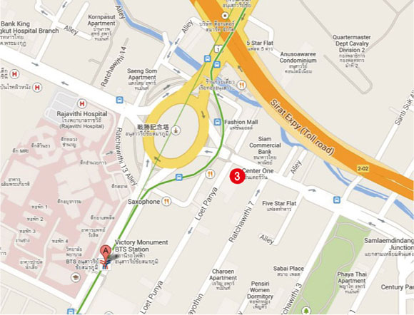 Victory Monument(戦勝記念塔)駅下車。 Roy LanのCenter Oneというモール内にある店舗で、11:00〜20:00まで毎日営業。