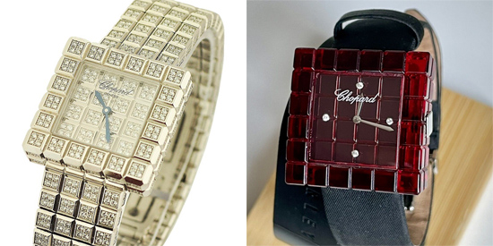 2001年発売。ボトルはアイスキューブウォッチにインスパイアされたもので、76個のルビーが両面に施されたものです。このボトルのキューブを数えると両サイドに18個ずつ、表と裏に20個ずつで76個でした。すごく忠実です。ボトルで少し意外だったのはキャップのように見えてキャップではないこと。このボトルにキャップはないのです。そのまま時計のスイッチ部分を押すだけなのです。危うく取ろうとしてしまって壊してしまった方もいらっしゃるのではないでしょうか。