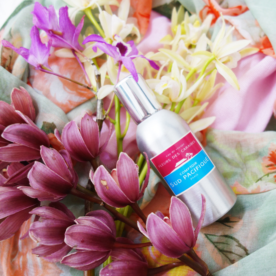 フルールド・カライブ。そう、カリブ海の花々という意味です。ブランドの中でも「トロピカルガーデン」にカテゴライズされている香りとなります。