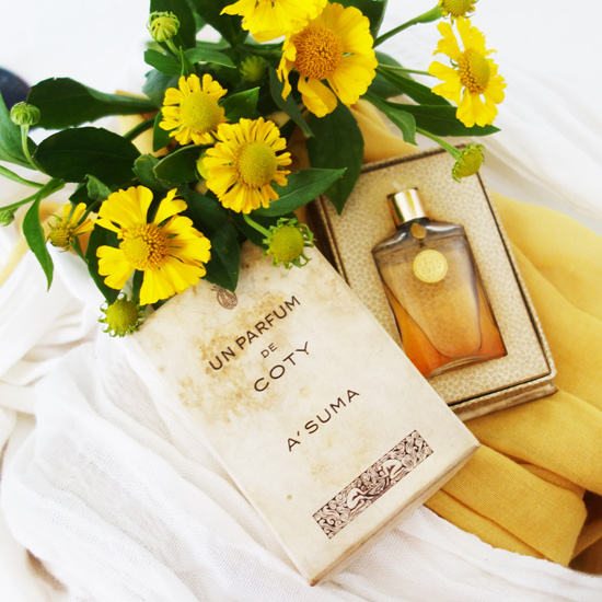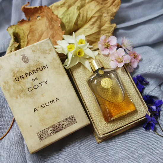 そんな香りは経年の劣化はあるものの。とてもしっかりとしています。それはこのボトルにきちんと内蓋があったことと、その内蓋が貼り付いてボトルと一体化してしまっていたことも香りが保存出来ていた要因なのかもしれません。往年のいわゆるオリエンタル香が軸となっていて、トンカビーンのCoumarinの香り、ヘリオトロープの甘くパウダリーな香りにパチョリとバニラが加わり、スイートオリエンタルな香りとなっています。本当であればもっとトップは爽やかに、中にはフローラルノートもたくさん入っていたのかもしれませんが、残っているのはベースのオリエンタル香のみです。渋さ、苦味は出ていませんので、このオリエンタルさが字のごとく「東洋」だったのでしょう。