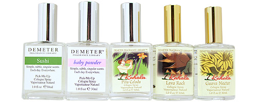 お寿司の香りです。これを香りにしようと思ったのはアメリカならでは、ですよね。お寿司ですからジンジャーも入っています。酸味はレモン。そしてお米と昆布の香りも入れているようですよ。そのままの香りだったとしても楽しいかどうかわからないとても微妙な香りですが、そっくりではないのでご安心を。これは興味本位で試香するだけで十分だと思います。それほど寿司っぽい酸味が強いわけでもなく、お米の香りがするわけでもなく、ディメーターの中では香水っぽい位置にいる香り。寿司の香りを使っているだなんて人に言えませんよね!!(05/08/2008)