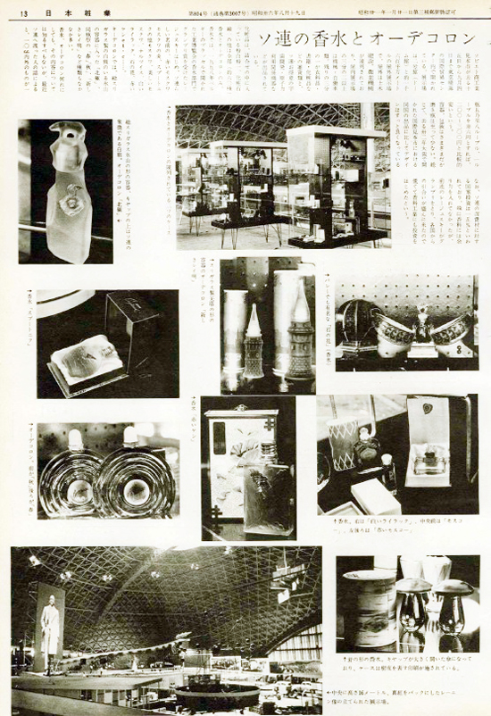 1961年8月〜12月に東京で開催されたソ連商工業見本市にはきのこの形をしたユニークなボトルのRudensが公開されていたことが当時のニュースからわかります。(新聞の右下)