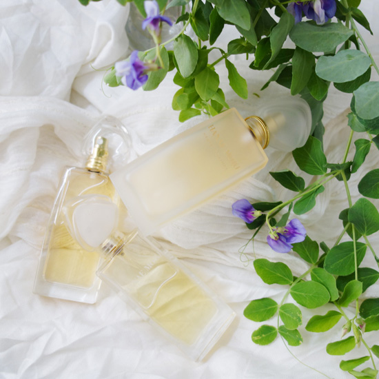 1998年発売のハナエモリのセカンドフレグランスです。こちらもEDT、EDPとがありますが、所有しているのはEDPバージョンになります。こちらはハナエモリとは全く違い、グルマン系の甘い香りではなくて、アルデヒドがしっかりと香るフローラルとなっています。アルデヒドがクラシックな香りとなっていますが、これくらいだったら受け入れられるのではないか?というラインです。そして、アルデヒドとフローラル以外に、ナルシスやガーデニアのグリーンな部分も香っています。そして、ベースにあるのが少しパウダリーで優しい香りなんですね。香りはあまり大きく変化することなく、次第に薄れていきます。最近の流行ではありませんが、フェミニンすぎず、芯のしっかりとしたとても良い香りだと思います。