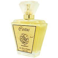 最初はラブダナムのことだと思っていたのですが、コスタスはキク科の植物の根から得られる精油です。学名は「Sausurrea lappaで、ヒマラヤ山系北西部のカシミール地方など高山地方に生育する植物で、アブソリュートとレジノイド(コンクリート)が得られます。香水にも使われますが、生薬としても有名で、木香とか唐木香と呼ばれて有用されているそうです。精油もお湯に垂らして吸引するそうですから。