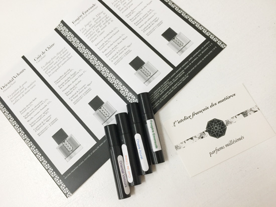 イタリアングリーンマンダリン(4.9%)、インドネシアンパチョリ(1.1%)、アンバーグリスティンクチャー(0.7%)、フレンチアイリスabs(0.3%)、ラオスベンゾイン、シナモン、カルダモン、ビターアーモンドエクストラクト