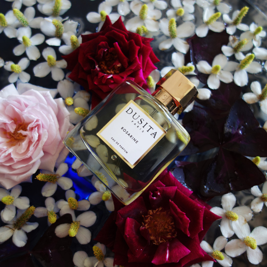 ローズドゥメイ、アイリス、サンバックジャスミン、アミリスウッド、フランキンセンス、アンブレット、コリアンダー