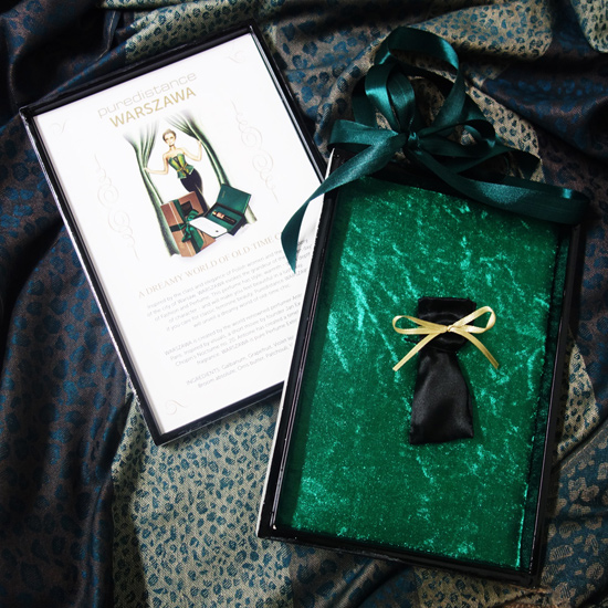 調香からすると、No.19を彷彿とさせるAntoniaに近い印象を受けます。2017年春の展示会で公開され、秋の展示会でお会いした際も肌に乗せて試したのですが、こちらは似たような調香ではあるものの、No.19を思い起こさせるものではありませんでした。確かにガルバナム、ジャスミン、アイリス、ベチバーという組み合わせはNo.19の骨格ですけどね。Warszawaはガルバナムの効いたグリーンフローラルで始まりますが、ヒヤシンス調ではなく、もっとオリエンタルなハニー調の香りがそれを包み込み和らげています。ベースにハニー調のベチバーが横たわることでシックな大人の香りへと導かれ、時代や流行を全く感じさせないモダンクラシカルとなっています。No.19ほどグリーンは強くないのですが、パッケージはグリーンで統一されています。