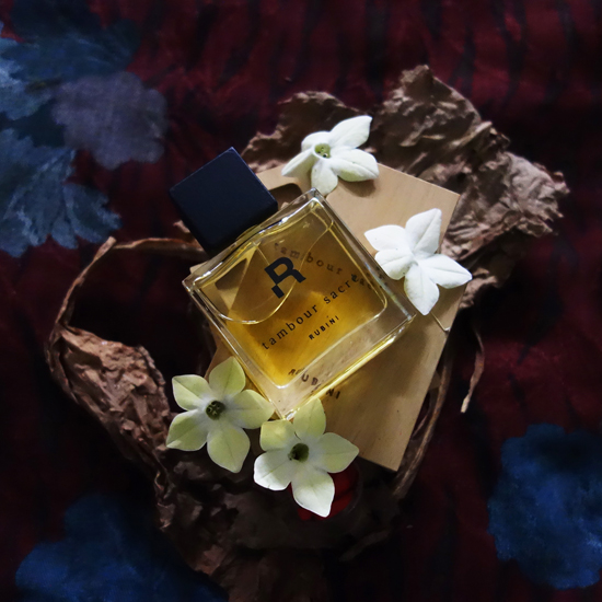再販された際、チュベローズを少し強めたと聞いた記憶があるのですが、久しぶりにフルボトルから香ると、エチオピアのダンス、アフリカンリズムをテーマとした、アフリカの黒褐色の仮面や木彫りの民芸品の色に焦点をあてた香りであることが良く伝わりました。それほど、コーヒーは褐色をイメージさせるアクセントとなり、スパイスが弾けた後は、オリエンタルウッディへと切り替わっていくのです。今回もチュベローズやファルネシアーナは強く感じられず、フローラルノートの方がスパイス扱いのよう。時間と共にその褐色のトーンは奥の方にハニーベースのフローラルノートが感じられるセクシーになっていくのですが、そうすると民芸品の黒褐色から肌の黒褐色へと印象が変わっていきます。黒人の滑らかな肌はブラックパンサーのようにしなやかで、原色のドレスであれ、真っ白なシャツであれ、それらを引き立てる美しさがあります。鼓動のようにリズムを刻み、内から外へと香りを広げミステリアスな雰囲気にさせてくれそう。