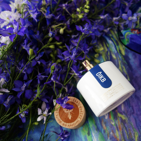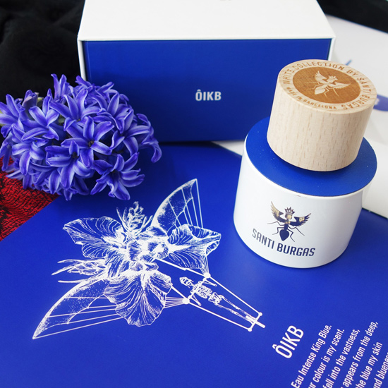 テーマカラーはイヴクラインというフランス人が作り出したインターナショナルクラインブルー(サファイアブルー)。とにかくこの青のイメージを打ち出すために用いたのがアイリスとラベンダーでした。 この香りの調香はSantiago Burgas Bou、Christian Carbonnelのお二人の共作。意見を出しながら共作していくって、彼らを知っているととても楽しそう。