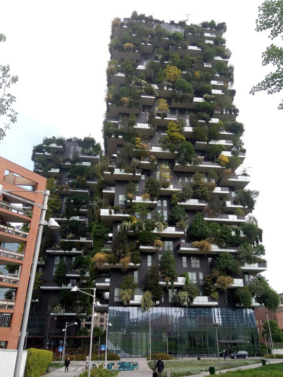 保留の森というタイトルなのですが、これはミラノの名所となっている垂直の森がテーマとなっています。2014年に建築家ステファノ・ボエリ氏によって建設されたタワーマンションで、ガラスで囲われたマンションのエネルギー消費を抑えようとして発案されたのが、外壁を樹木にするというものでした。呼吸する外壁は、都会の中にある森となったわけです。もちろんこの環境の中でも育ちやすい樹木が選ばれていますが、住民の皆さんは枯らさないようにしないと、ですよね。高層階には害虫もいないでしょうから、風に強ければ大丈夫そう。これぞ、空中庭園。