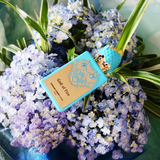 ターコイズブルーを香りとして表現したのではなく、香りがターコイズブルーを発するという、まさに逆転の発想の香りです。