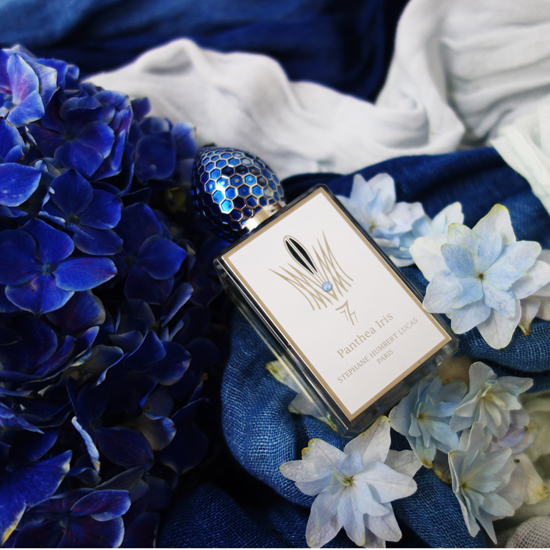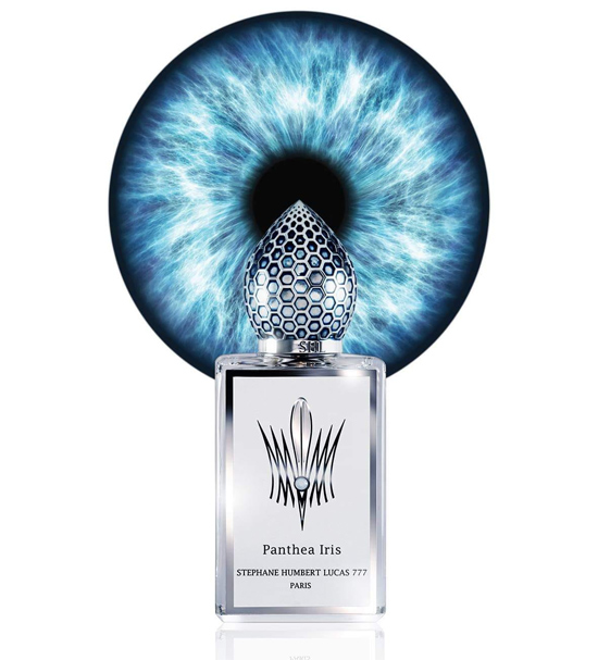 もともとのPantheaは古代ギリシア語で全ての神々を意味しており、彼はクレオトパトラのミルク風呂のようにサンダルウッドやホワイトムスク、アイリスなどで作られた白をイメージさせるものでした。ところがこのアイリスは瞳の虹彩をイメージした画像で香水されました。だから、ボトルキャップがブルーに着色されているのです。それが何とも美しい。