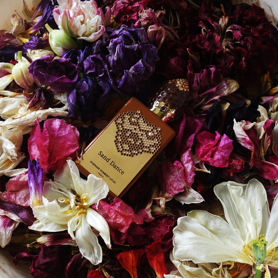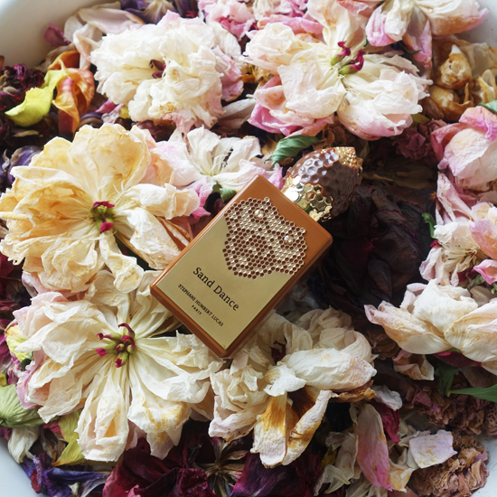 最初に試した中では、一番好印象だった香りです。ブラウンというよりもキャラメルに近いカラーで、香りもグルマンに近いオリエンタルウッディなのです。カカオが一瞬香ばしく香るものの、香りはすぐに滑らかなオリエンタルウッディへと変化していくのですが、彼はもともとMortal Skinで蛇の感触をサンダルウッドで表現していました。こちらもそのサンダルウッドを踏襲し、もちろんインドということでたっぷりと配しています。このサンダルウッドがCrying of Evilに通じる香りで、インドのマイソール産サンダルウッドに近づけるため、ココナッツを用いるのが通例のところ、ミルクを用いているのがIFFのコンパウンドです。おそらくそのタイプを使用したのでしょう。とてもミルクっぽいラクトニックなサンダルウッドが全体をまとめているのです。シダーウッドとウッディムスクのカシュメランに彩られたとてもスムーズなサンダルウッドで、色に例えたらブラウンというよりもベージュ。となると、タイトルの砂にとても近いことがわかります。インドなのにスパイスが控え目で、チャイではなくてカカオにしたのがユニークなポイントで、自由な発想で楽しませてくれます。