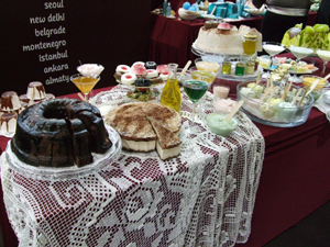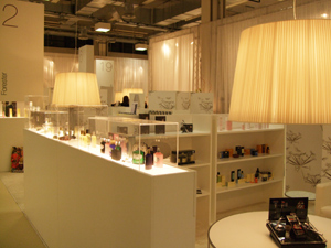 一般ブースにあったドルチェのコスメです。すごいですよ、ボディクリームなんかをカクテルグラスに入れて展示したりするなんて。ケーキはソープだったり。