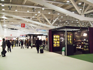9:00オープンだったのですが、何故か受付でストップです。出展者のみの入場で関係者は9:30からだと言い張られたのですが、チケットには9:00と書いてあります。結局受付は9:20から始まったのですが、どうやら受付要員が足りなかった様子です・・・。人員が到着(遅刻?)していたから開場を遅らす辺りのいい加減さがイタリアです。しかも、バーコード読み取りだったのですが、上手く読み取ることが出来ずに、スルーすることになりました。僕らの記録は残っていないと思います。こういう対応もイタリアらしいところで苦笑いです(^^;