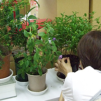 本物に触れるということで、更に弊社にあったハーブや植物も手にとって香って戴きました。ヘリオトロープ、ラブダナム、マートルの3つが右の画像のもので、それ以外にはアンブレットシード、ヴァーベナ、ゼラニウム、シトラスリーフ、シナモンリーフ、イランイラン等がありました。香水とアロマは根本的に使用する香料の幅や種類が別なのですが、「素材を知らずしてイメージが出来るのか」、という点で同じだと思います。