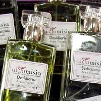 もともとのラインは50mlと12mlのEDPで、Palazzo Vecchio同様にシンプルなシングルノートが多いのが特徴です。香りのラインナップも似ていて、こちらのサイトもあります。この古いサイトでは24種ほどの香りがあります。でも、ボトルがあまりにPalazzo Vecchioそのものだということで、今回リニューアルをしたのです。タイトルも一新して、「Alchimisia」 と名づけられました。アルキミシアとは彼らの作り出した造語なのですが、 Alchimistaは錬金術師を意味するイタリア語ですので、それを絡めた造語なのだと思います。以前からあるイノシシ薬局の香水を、シンプルなシングルノートのものと、複雑な調香のものと分け、シングルノートはイノシシ薬局り製品として発売し、アーティスティックなものはアルキミシアとして発売をすることになったのだそうです。そのアルキミシアのラインナップは14種類。