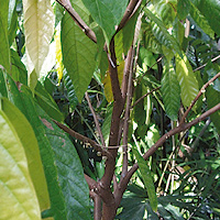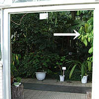 温室を出るときに温室の出口付近にあったのがカカオの木なのですが、画像でカカオの花がどにあるかわかりますか?樹木から直接花が咲いているんです。しかも、極小の花が・・・。これも見過ごしてしまいそうな花ですよね。(香りはないのですが・・・)