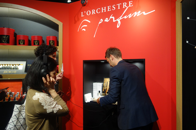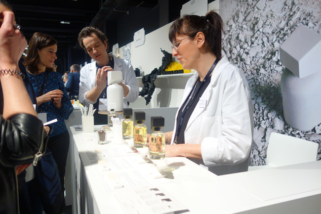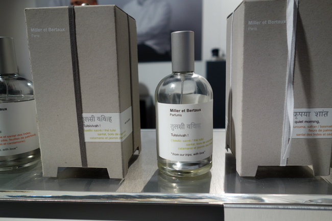 会場は、すでに知名度のあるブランドから始まり、その奥に小さな始まったばかりのブランドが。その次はコスメ関係が少しあり、最後はフランスチームという構成。入ってすぐあったのは日本でもお馴染みのMiller et Bertaux。最新作はTulsivivah!はタイ料理に使われるホーリーバジルを使用した香りに。香りを説明してくださったのはDenis Vogadeさん。彼はこれまた日本で人気のLothantiqueのヘッドの方。だから、頻繁に来日されているようで、親日な紳士でしたよ。