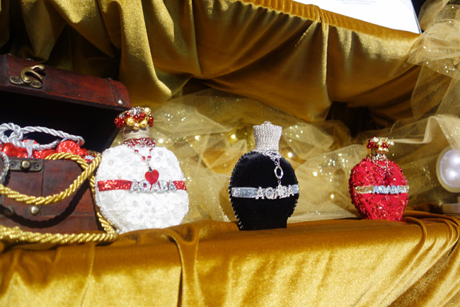 Aqabaの新作は、初めて撮影を許可された僕のこの画像で情報解禁となりました。サウジアラビアの結婚式に招かれたことをきっかけに、そのために手作りしたボトルカバーと香りをウエディングコレクションとしてリリース。サウジアラビアの結婚式は一週間続くのだそう。そして、僕の告知効果があったのかどうなのか、最終日までに問い合わせがたくさんあり、手作り品だから間に合わないわ、と嬉しい反響だったそう。おめでとう、Miriam Mirani!! 今年は娘さんとのご参加でした。
