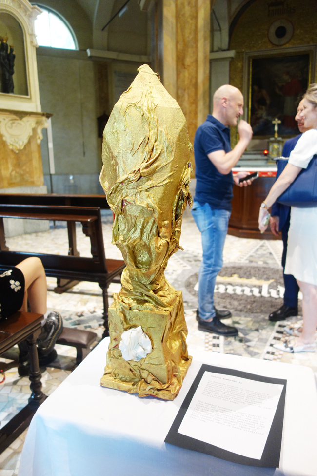 教会には彼が手がけたオブジェがたくさん展示してありました。この白い布の部分に香りが付けられているのです。
