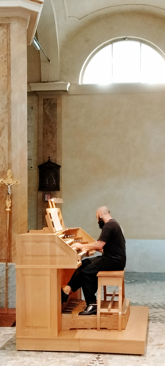 彼のオルガン演奏は展示会の度に聴いてきましたが、パイプオルガンが多かったため、小さな教会で小さなオルガンでの演奏は初めてでした。でも、彼は本当にナンでもこなせる器用な人。今回は途中でブレーカーが落ちてしまい、一度中断することになってしまいましたが、その時に彼が口にしたのは、感謝の言葉でした。神学校を卒業した彼は、根本的に愛に溢れた慈悲深い人です。