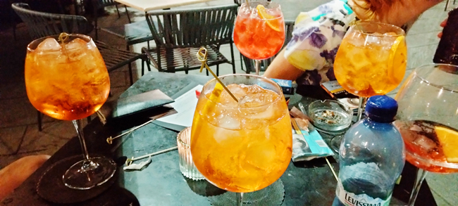 夕陽のようなカクテルのこれは、ミラノの食前酒として大人気のもの。ミラノ生まれのリキュールであるカンパリはいつだって大人気ですが、中央奥のカクテルがカンパリを使用したもので、それ以外は新たにカンパリの会社がつくったアップルリキュールを使用したもの。そのリキュールに白ワインと炭酸を入れたフルーティーで美味しいカクテルで、ここ数年の大人気のものだそう。かなり大きなグラスのため、2杯で結構な量になるのですが、飲み終えたのは日付が変わった頃でした。イタリアではカフェもレストランも大賑わいで、日常が完全に戻っていたのですが、定期的にこうして友人たちと集まり、たわいもない話をしながら過ごすことで心の健康を保っているのだと、感じた一日でした。