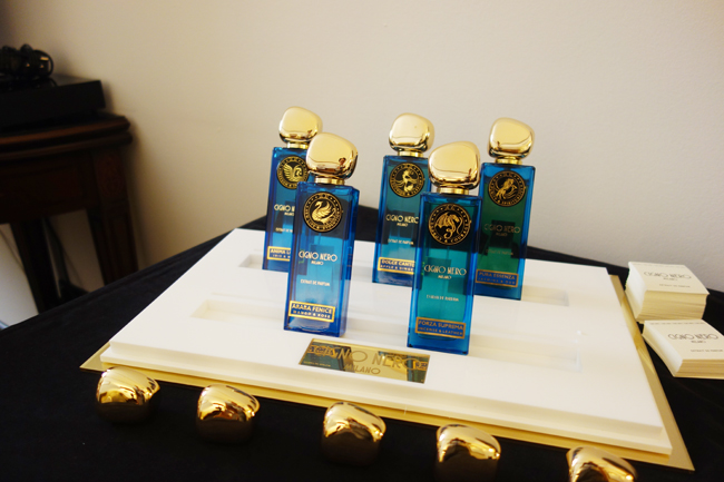 別のホテルで開催していたのは、Onyricoでした。Niche & Co.はOnyricoAnima Mundiの次にブラックスワンという意味のCigno Neroというラインをスタートさせました。広報に入るその時に、コロナ禍へと突入してしまったのです。だから、僕は初体験。他の2つのラインよりも価格を抑えた商品にして、別の世代へのアプローチを狙ったラインのため、重厚感に欠けますが、香りそのものは他のラインと全く遜色のないもので、ボトルとパッケージが簡略化されています。価格は88ユーロでExtrait de Parfum。