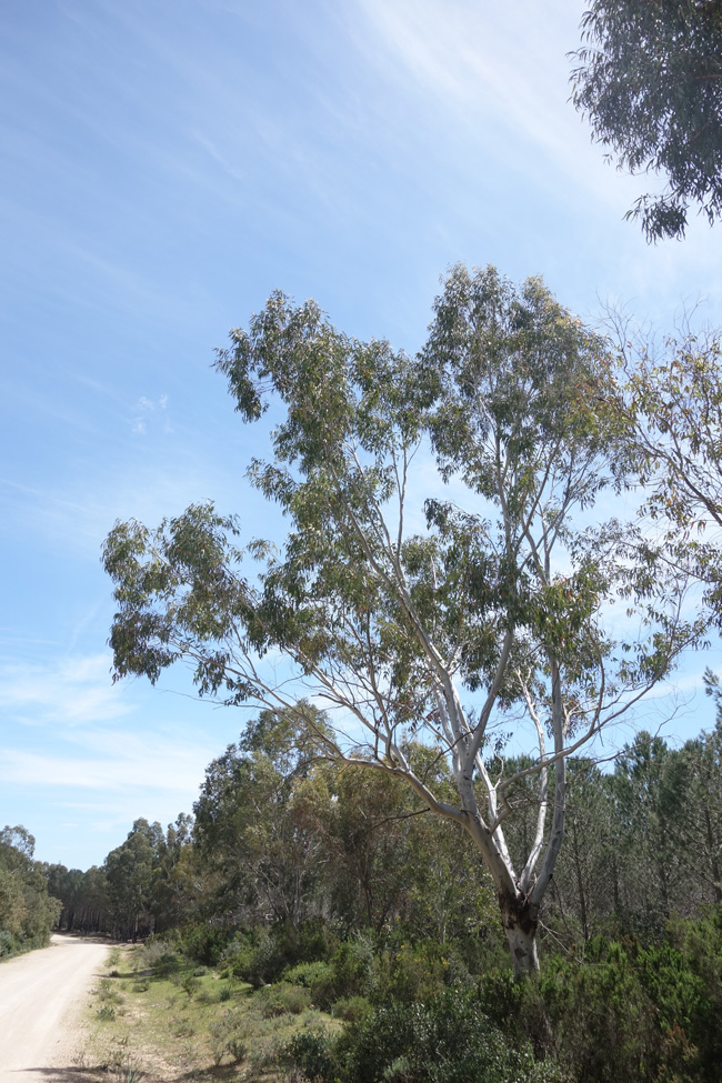 こちらはユーカリの森。ユーカリは雨が少ない乾燥地帯でも育つ強靭な樹木ですから、南部の砂漠に続く地域でも頻繁に街路樹として植えられていました。でも、この国の、この地域のユーカリは他の地域のものと違っていたのです。どこが違うかわかりますか? (ちなみに、上記画像の中で下草として生えているのはラベンダーとマートルで、ユーカリだけが植樹だそう)
