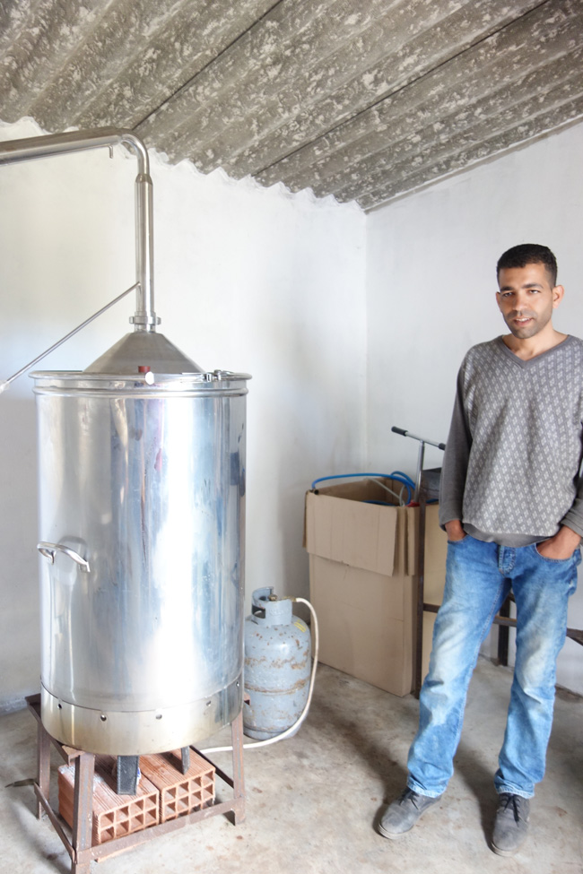 彼らの取り組みというのは、Maison Nature des Mogodsと呼ばれているものだそうで、WWF、Sylvagri、BIO tunisiaやFoundation Slow Food pour La Biodiversite、そして国からのODAを受けて作られた学校の運営です。先生であるMastouri Aliさんは、こちらで野菜作り、蜂蜜、蒸留の3つを教えているのです。それらは全てがつながっており、野菜を作る堆肥は蒸留後の残留物から、畑とハーブの花から蜂蜜が取れることに。彼らの蜂蜜や取り除かれたワックス類は化粧品だけではなくて医療にも使われているそう。