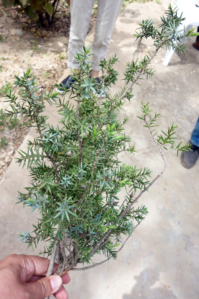 これが、このナフザで育っているジュニパーベリーなのです。そう、上記の葉はジュニパーリーフなんですよ。このベリーは直径が1.5cmほどもある巨大なベリーを実らせていて、とにかくそのサイズにびっくり。樹高も身長より遥かに高かったですよ。