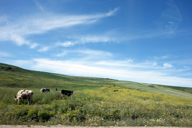 チュニス市内を早朝に出発し、2時間程度だよ、という街へ向かう。チュニス市内を抜けると景色は一転して田舎の牧歌的な風景へと転じ、チュニジアにいることを忘れてしまうほどの光景が続きます。