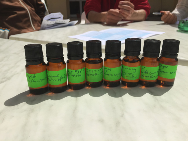 と、事前に説明したこともあり、真っ先にサンプルを出してくれました。でも、香ってみてびっくり・・・。そのほとんどが香り慣れている精油たちと違うのです。部位も一緒、学名も一緒? え? こんなに違うの? 一同が驚いたその植物たちを実際に見に行くことに。百聞は一見にしかず、です。