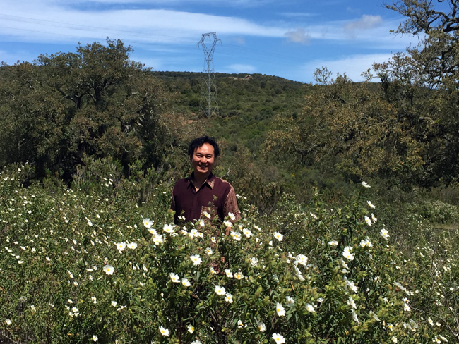 あまりに美しい景色に思わず車を止めてもらい、外に出て空気を吸いながらの休憩。白と黄色のキク科の植物が大地を彩っていた4月半ば、一番この国が美しい季節だよ、とのこと。丘は多いけれど高い山や森は少なく、頂上までこうした草原の風景が続いています。