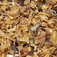 まるでキクラゲのようなモスですが、アイスランド産です。手元にあるオークモスを細かくカットしたらこういうものになるな、という感じです。精油を得る際には水で戻して蒸留するのでこれが原型です。