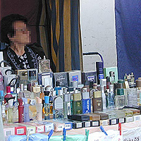 そして、次は海外の様子です。これはもう氾濫です。昨年の秋にイタリアのアッシジ(トスカーナ地方)で摘発された業者のニュースなのですが、159種60万本の偽造香水が押収されて話題となりました。60万本ですよ、60万本!!Dolce & GabbanaDiorVersaceKriziaFendiChanelCalvin Klein等に加わってなんとSanta Maris Novellaも発見されたようなのです。上の画像だと資生堂のフェミニテドボワとかゴルチェのボトルも見られますよね。おぉ、怖い!!Santa Maris Novellaの製品はボトルのラベルがリニューアルされたのをご存知の方も多いと思いますが、僕があのタイプを見かけたのは年明けくらいからなのです。摘発されたのがトスカーナの業者だったこと、フィレンツェのお土産品としてSanta Maris Novellaの製品が大人気であることから目をつけられたのではないかと思います。そこでラベルを変更して偽造し辛くしたのではないでしょうか。(一時的なものでしかないのかもしれませんが・・・)ここで摘発された業者はマフィアがらみで、マネーロンダリング(資金洗浄)に使用されていたのではないか、とイタリアで説明を受けました。(右のようにバザーとかでよく売られているのは以前からあるなんちゃって香水のようにクオリティの低いものです)