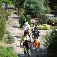 当日は関東よりも蒸し暑く、背中をタラタラと流れていきます。恐ろしく暑い日中、山のような丘のような植物園をぐるぐると歩くのはへとへとですよ。集合時間までにいろいろと確認をして、回る順序を決めながら集合です♪スムーズに皆さん集まりまして、あっという間に散策開始です。真夏は花木が減るので、グリーンばかりだったりするだろうと思っていたのですが、なんのなんのいろいろ見られましたよ。植物園は星が丘門から入ったのですが、入ってすぐのところにあった紫色のペチュニアがまず香りました。ペチュニアの紫色って香るんですね、とっても意外だったのですがフルーティーで少しクローヴ調と微かなパウダリーさを持った香りでした。そこからか花が咲くほど伸びたタラの木を見つつ、園内をぐるりと回りました。タラの木があっちこっちにあったのですが、皆さん芽しか知らなかったようで、どのような樹木だったのか初めて見たという方も多かったようです。馬酔木、三叉等、ササゲ、栗、梨、そしてハーブをいろいろと香りながら一通りの花を見て、香って休憩です。