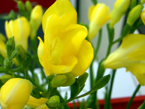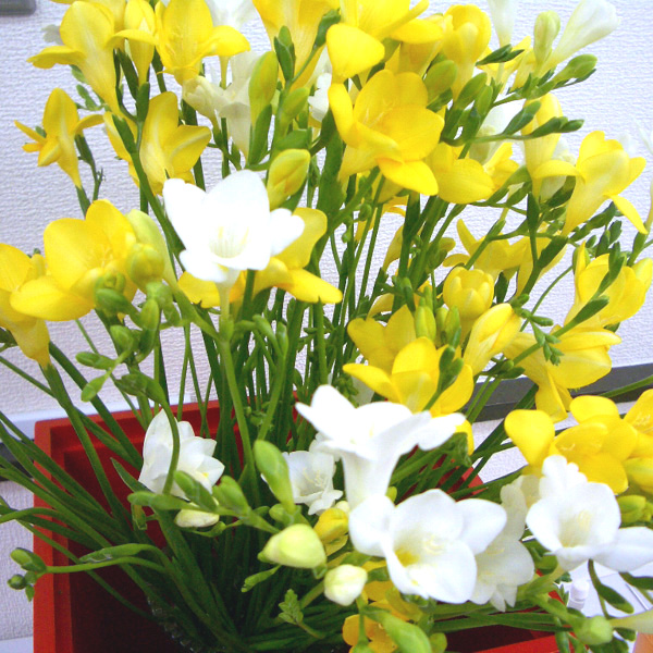 花束でもらうと花束1つでとても香りにつつまれる、春の代表花フリージア。ホントは、真冬だと花が少ないかも・・・と思って「スパイスとフルーツ」で考えていたのですが、すでにいろいろと春の花が出回っているようです。ストックも出回り始めましたよね。春は春で比較したい花が多くあるので(スズラン、ミモザ、ライラック、スミレ等)、先に比較できるなら、とフリージアを題材にしたいと思います。