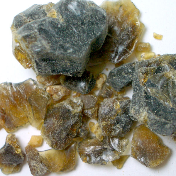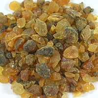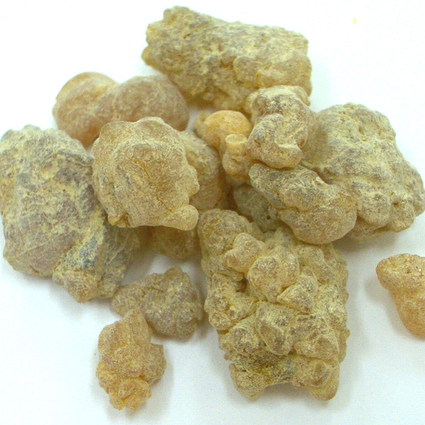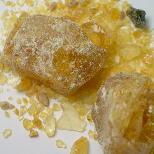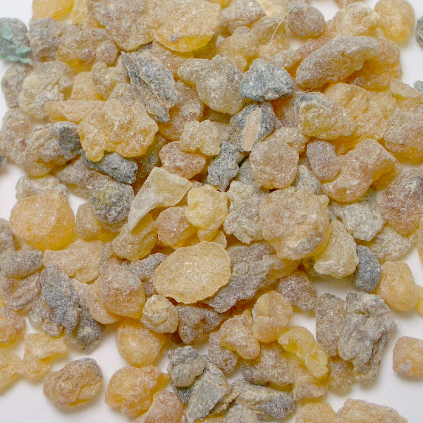 カンラン科の潅木のググルツリーの樹脂です。ググルって、アーユルヴェーダでも有名なハーブ樹木で、漢方なんかにも用いられているようです。インドからアラビアにかけて広くある樹木で、ゴムの樹から樹脂を得るように傷をつけて採取します。香りも似ていることから「インドミルラ」とも呼ばれていて、大切な薫香として用いられているそうです。