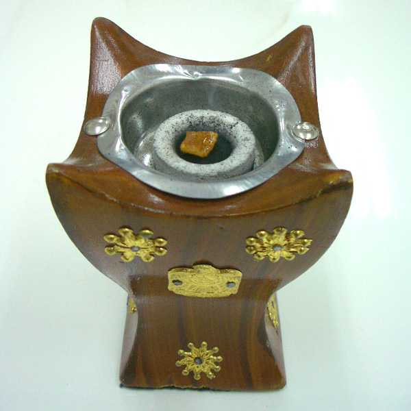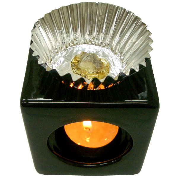 左の画像をクリックすると大きな画像になりますので、よーく見て下さい。樹脂が溶けていますよね。そこからすーっと煙となって立ち上っていくわけです。ちなみに、画像のものは「ベンゾイン」です。200円で完成しちゃうんだから、すごいです!!